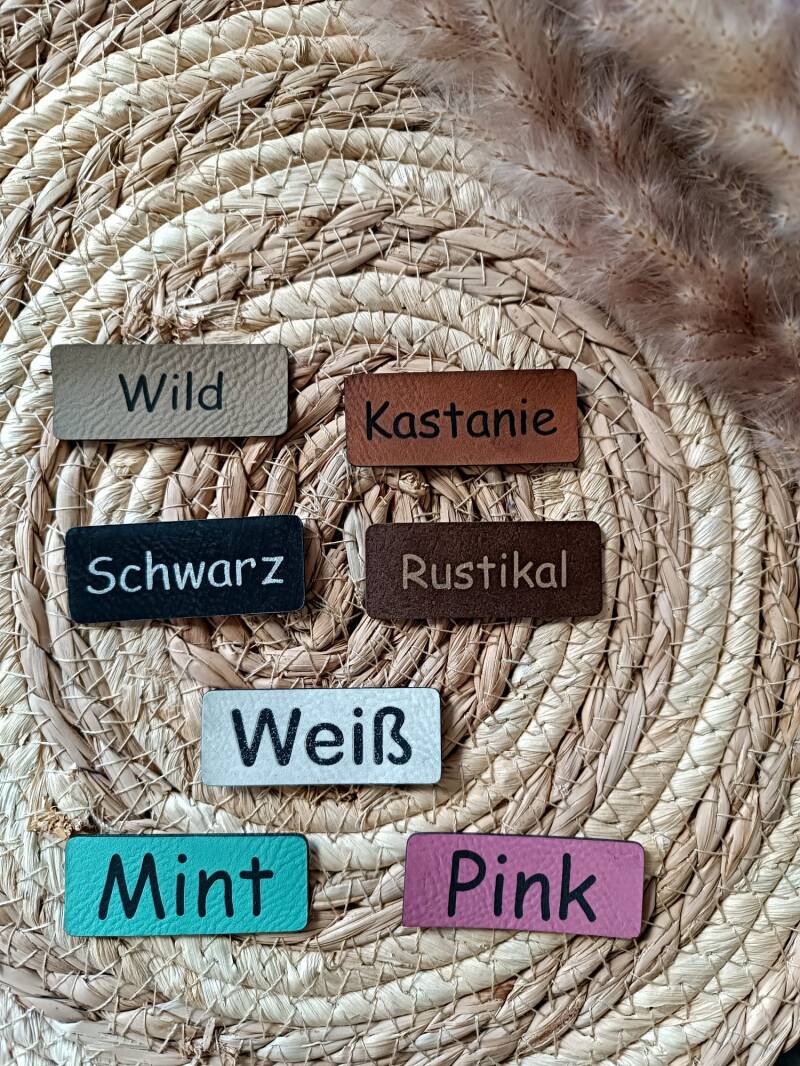 Kunstlederlabel - weich und felxibel, nicht selbstklebend.